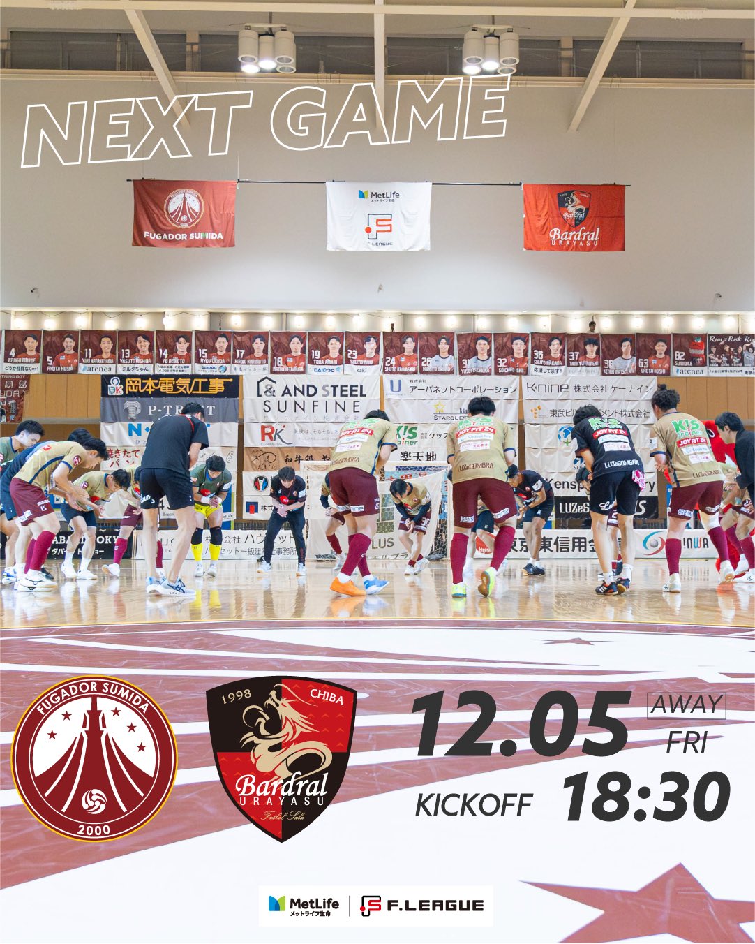 2時間前アウェイゲームvsバルドラール浦安ライトプラン